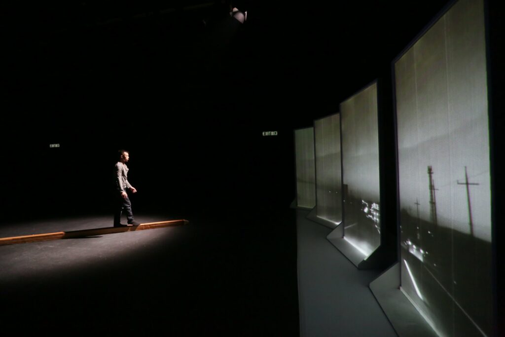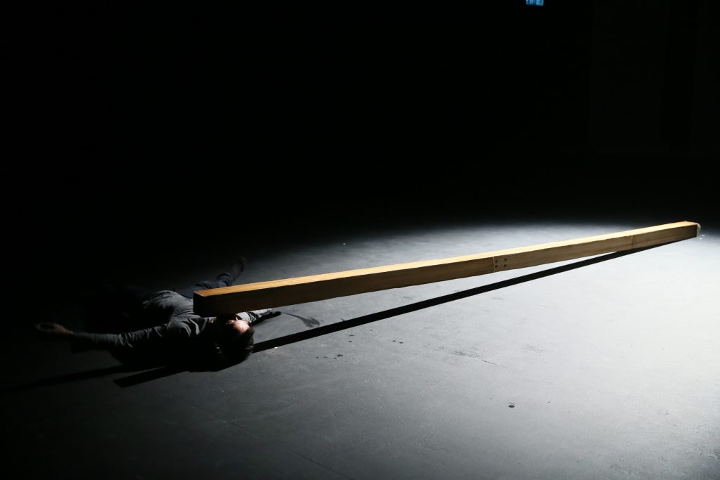 舞者以孤獨的身軀,在荒蕪的舞台上,與時間並行、與時間競賽。